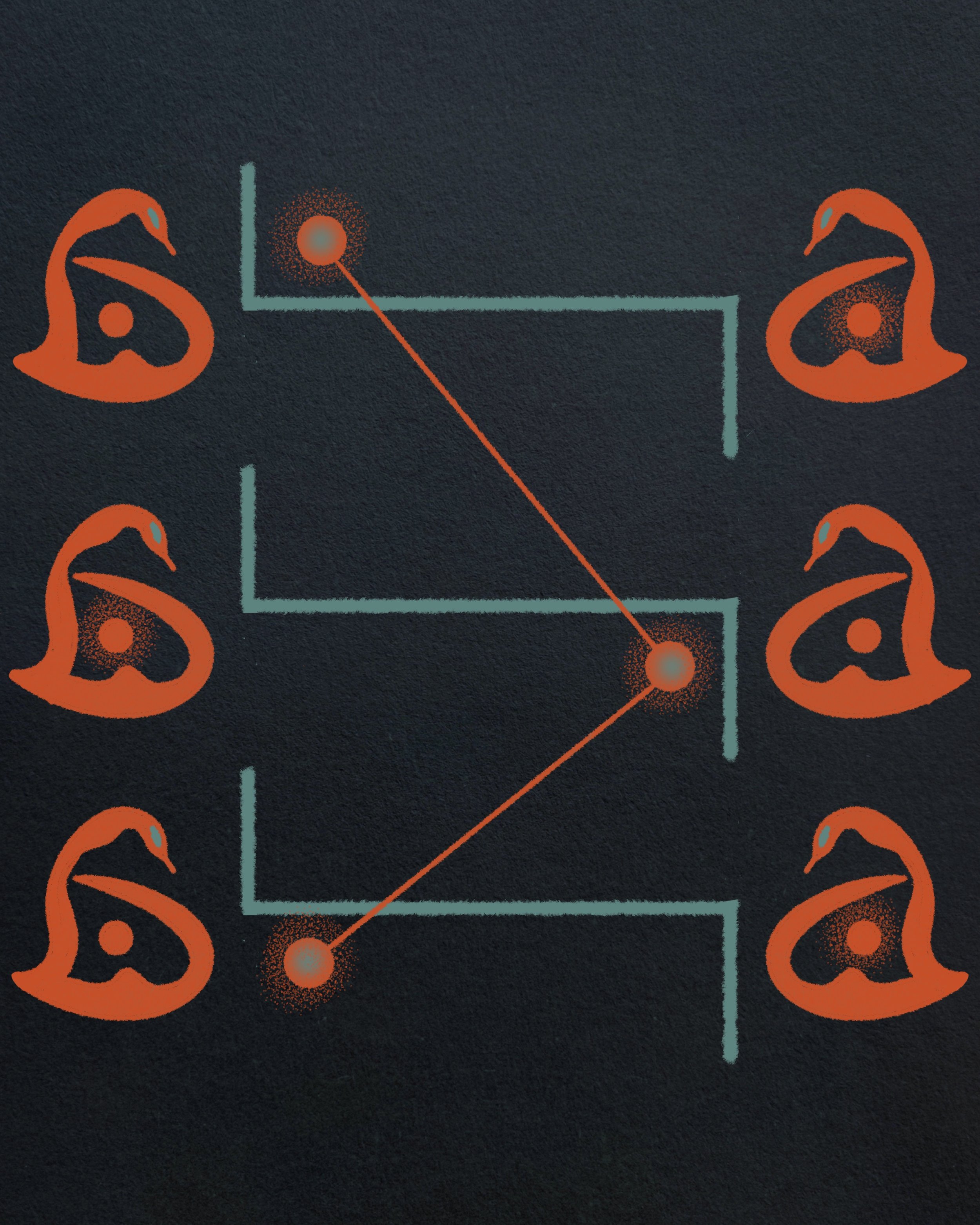 In illustration, I find a space for both order and freedom. My pieces are the result of reducing an idea to its minimal expression, where geometric structures coexist with organic and fluid strokes. It is a visual dialogue that seeks balance between the precision of design and the imperfection of the hand, creating compositions that invite slow observation.